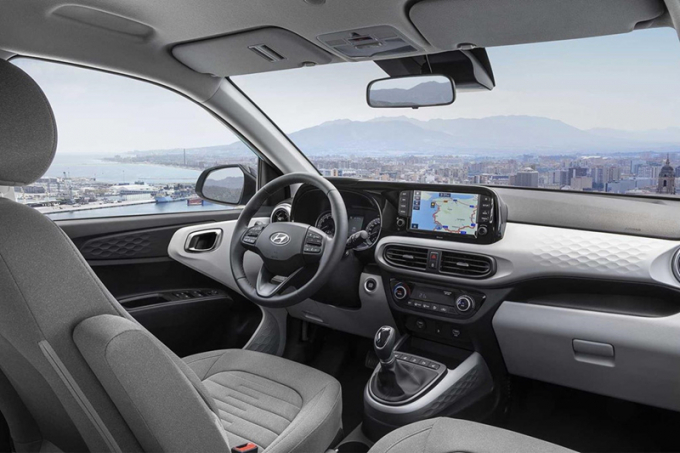 Nội thất Hyundai i10 2020 được nâng cấp với màn hình cảm ứng 8 inch hỗ trợ Apple CarPlay và Android Auto.