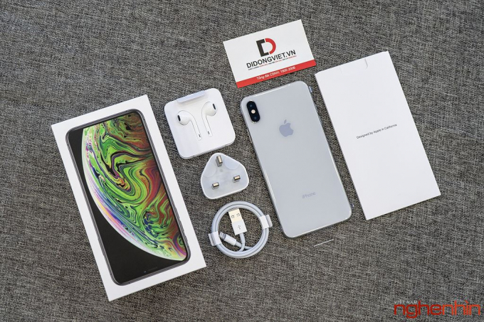 | Cận cảnh iPhone XS Max và phụ kiện đi kèm trong hộp. |
