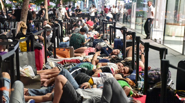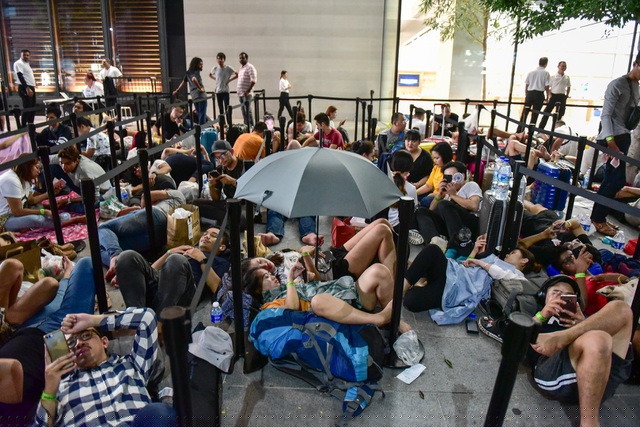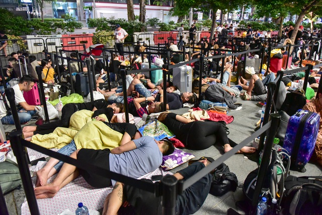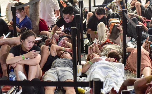 Khoảng chừng một ngàn người đã tham gia xếp hàng, chờ đợi tại đây nhiều giờ đồng hồ. Họ ăn uống và ngủ nghỉ ngay tại chỗ.