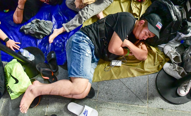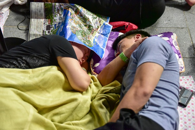 Họ ngủ vạ vật ngay tại vị trí xếp hàng và không quên ôm chặt những đồ vật có giá trị.