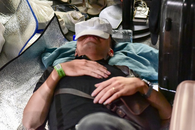 Bất cứ vật dụng gì cũng có thể được tận dụng để gối đầu, che mắt giúp họ dễ ngủ hơn.