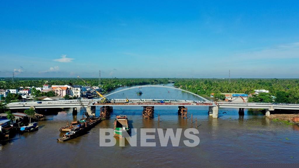 Cầu Măng Thít trên địa bàn tỉnh Vĩnh Long nằm trong nhóm 23 cầu sử dụng vốn dư của Hiệp định vay vốn, được bổ sung vào cuối năm 2018, tổ chức đấu thầu từ quý III-IV/2019, kịp thời gian hoàn thành tháng 6/2020. Ảnh: Quang Toàn/BNEWS/TTXVN