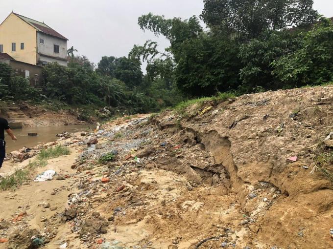 Một số nhà dân dọc theo bờ kè đã sụt lún phần móng, sập tường, nguy cơ đổ sập bất cứ lúc nào. Nhiều vị trí bị sạt lở, mất dần kết cấu.