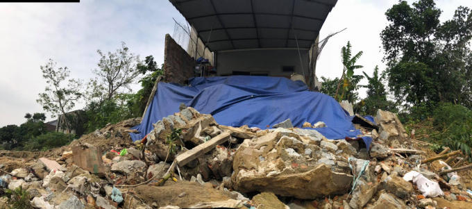 Vật liệu nằm ngổn ngang tại công trình.