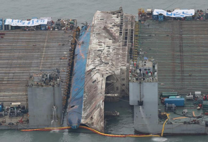 Các lực lượng cứu hộ Hàn Quốc phải mất vài ngày trời mới đưa được chiếc phà Sewol nặng 6.825 tấn nằm sâu 40m dưới đáy biển lên khỏi mặt nước.