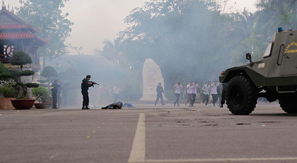 Cận cảnh sinh viên cảnh sát diễn tập chống vũ khí hoá học, giải cứu con tin