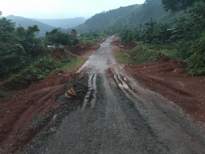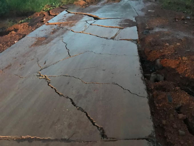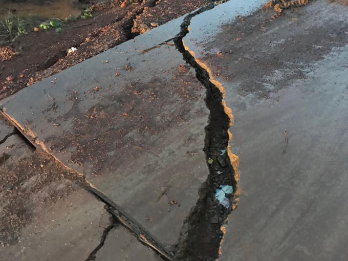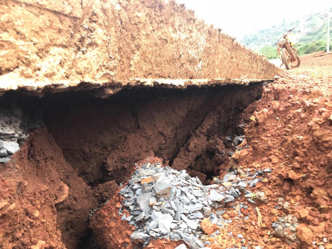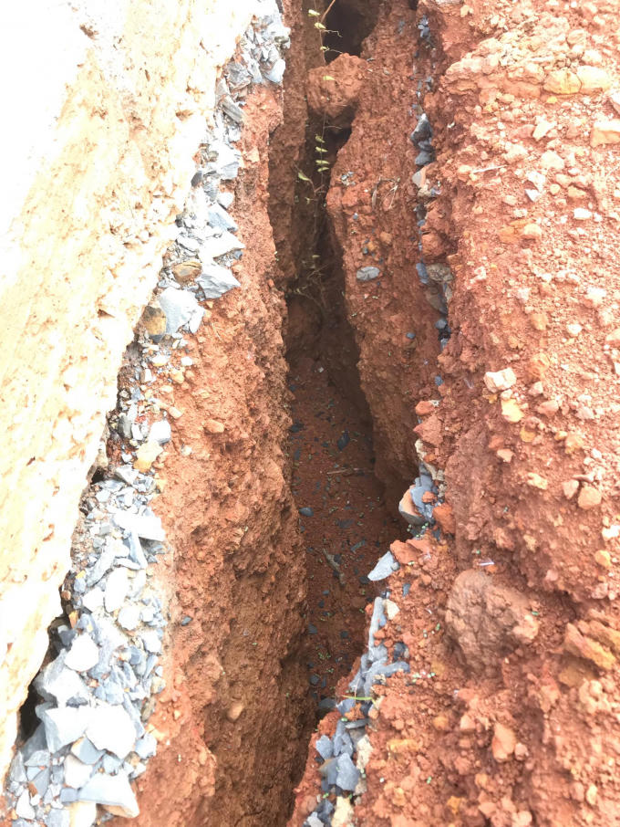 Nhiều đoạn đường bị gãy nứt tạo thành những khe nứt lớn.