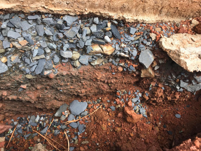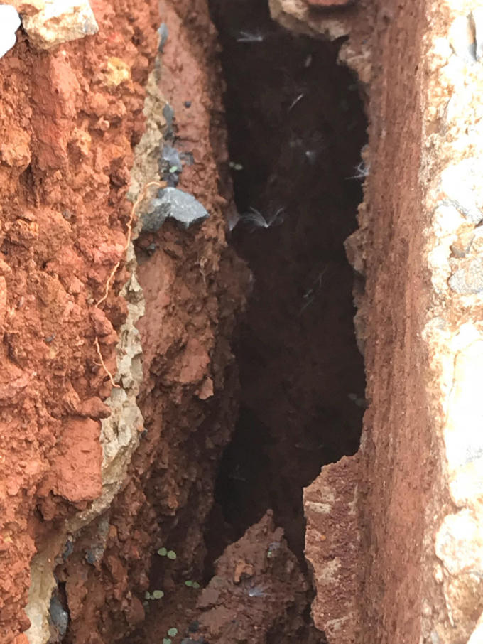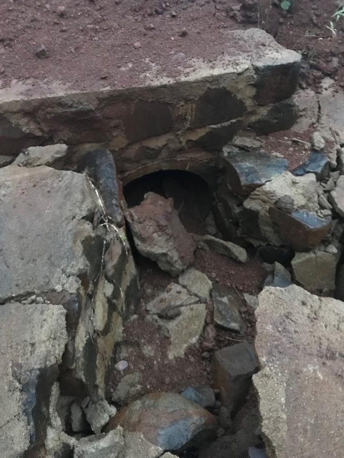 Phần cống thoát nước bị vùi lấp đầy đất đá hiện vẫn chưa được khắc phục xử lý.