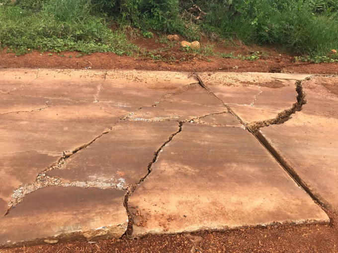 Tuyến đường bê tông nông thôn Đạ Pal - Tôn K’Long tại huyện Đạ Tẻh, Lâm Đồng có kinh phí đầu tư lên tới 80 tỷ nhưng chưa bàn giao nghiệm thu đã hư hỏng.