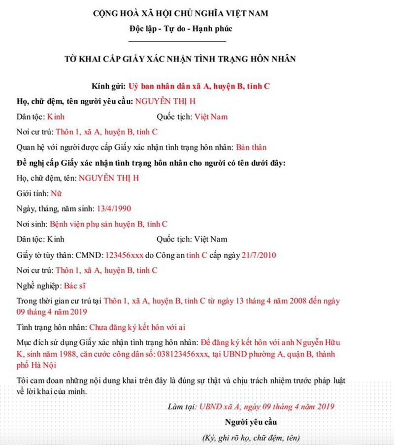 Qua báo chí, ông Khanh cho biết, việc pháp luật yêu cầu ghi thông tin của người dự định kết hôn vào Giấy xác nhận tình trạng hôn nhân (dùng để kết hôn), trước hết nhằm đề cao tính nghiêm túc, ý thức trách nhiệm của mỗi bên đối với hôn nhân vì mục tiêu “Xây dựng gia đình ấm no, tiến bộ, hạnh phúc” tại Luật Hôn nhân và gia đình.