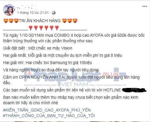 Các nhà phân phối quảng cáo sản phẩm này như một thần dược và còn được nhiều chương trình trúng thưởng do Công ty TNHH Ayofa tổ chức.