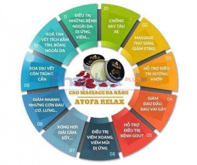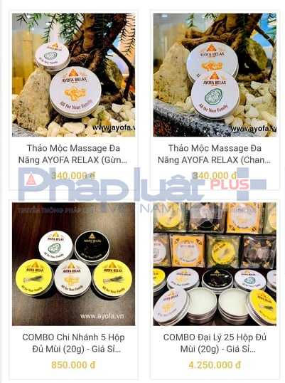 Theo tìm hiểu của PV báo Pháp luật Việt Nam, tại trang web: ayofa.vn sản phẩm cao đa năng Ayofa được bán từ 170.000 đồng đến 340 nghìn đồng/ 1 hộp với 11 công dụng như: chống say tàu xe không gây mùi khó chịu; massager thư giãn ngủ ngon giảm stress; hỗ trợ xương khớp thoát vị đĩa đệm, suy giảm tĩnh mạch; giảm đau đầu đau vai gáy, tê bì chân tay; hỗ trợ điều trị bệnh gout, bệnh trĩ, bệnh phụ khoa; điều trị viêm xoang, viêm mũi dị ứng, nhiệt miệng; xông hơi giải cảm sốt, ho, khản cổ; giảm nhanh đau cơ, đau lưng, tai biến, đột quỵ; xoa dịu vết côn trùng cắn, nẻ chân tay, nẻ môi; xóa tan vết bầm tím, chữa lành vết bỏng ngoài da; điều trị viêm da, dị ứng, chậm sữa nổi mề đay…