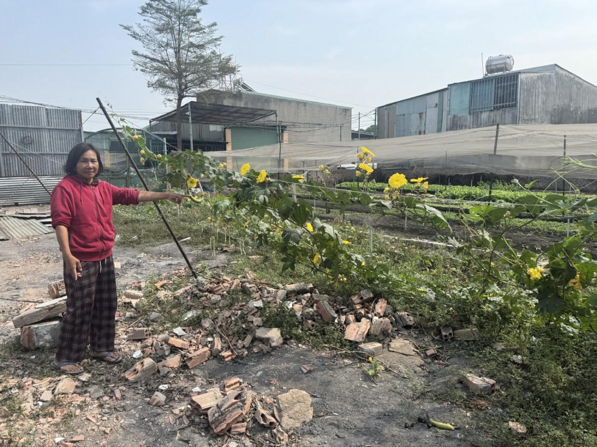 Sau khi nhận chuyển nhượng, bà Lê sử dụng đất để trồng rau và đặt container phục vụ canh tác.