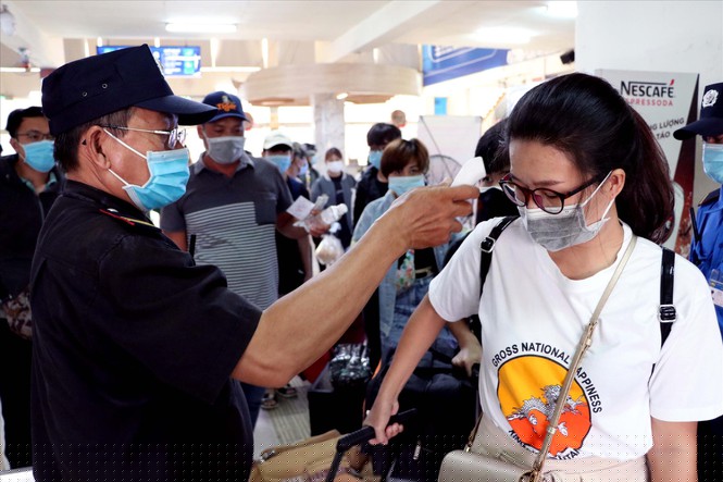 Kiểm tra thân nhiệt hành khách trước khi lên xe rời TPHCM