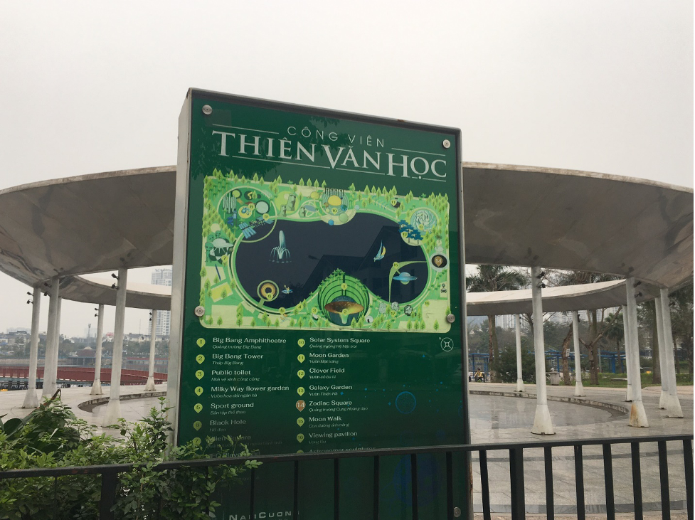 Theo đó, Công viên Thiên văn học là công viên ngoài trời đầu tiên ở Đông Nam Á lấy chủ đề thiên văn học, với tổng diện tích hơn 12 ha. Công viên Thiên văn học gồm các hạng mục như: Quảng trường Zodiac, Vườn Dải Ngân Hà, Quảng trường Hệ Mặt Trời, Cầu Ánh Trăng, Khu vật thể lạ (UFO Zone), Quảng trường Ngoài hành tinh, Bể Hố Đen, Đài phun nước Ánh sáng, Vọng Lâu…