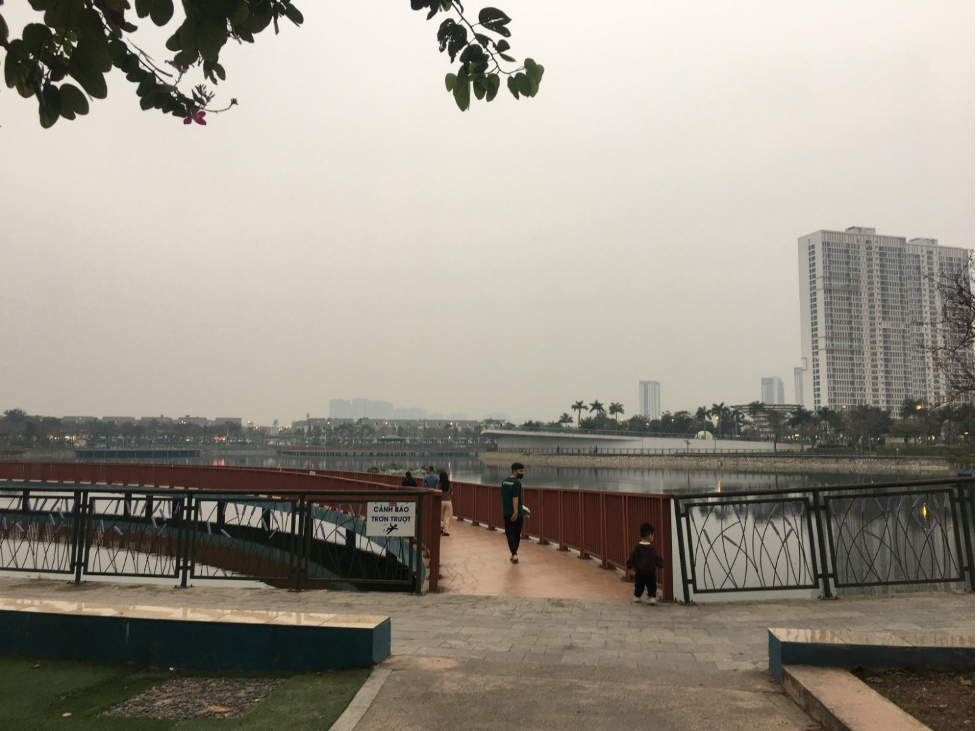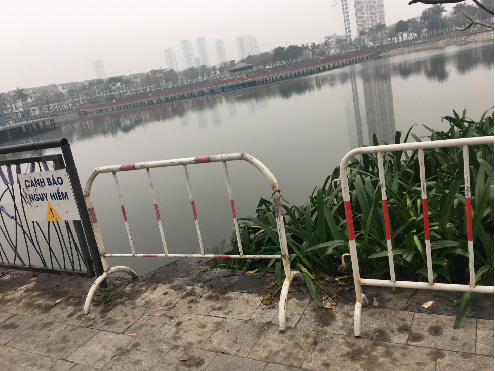 Khu vực gần hồ nước không được rào chắn cẩn thận. “Không chỉ tôi, mà nhiều phụ huynh khác khi cho con vào công viên chơi cũng rất lo lắng, phải để mắt trông chừng và luôn nhắc nhở con tránh xa chỗ hồ nước nguy hiểm” - Chị Khánh Ly (30 tuổi, trú phường Mỗ Lao, quận Hà Đông) nói.