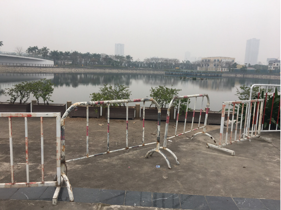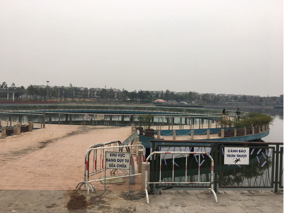Nhiều khu vực của công viên vẫn đang tu sửa lại cơ sở vật chất, đặc biệt đây là khu vực trên cao và phía dưới là hồ nước sâu, phụ huynh cần đặc biệt chú ý.
