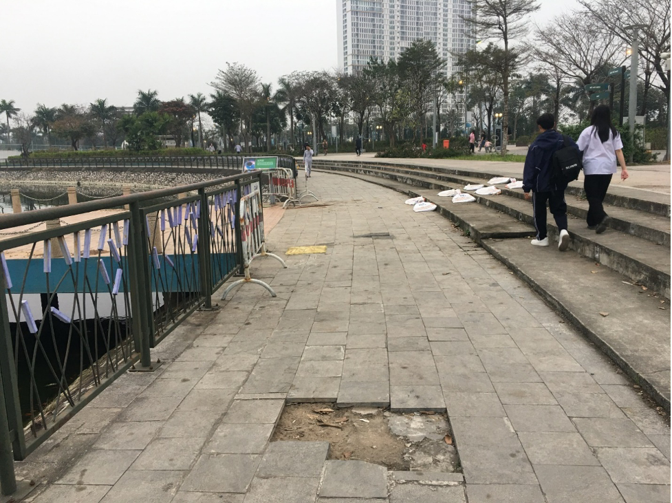 Tại một số đoạn đường xung quanh hồ Bách Hợp Thủy, các mảng gạch lát đã bị bung, biến dạng chưa được tu sửa, người dân khi đi qua cần chú ý cẩn thận.