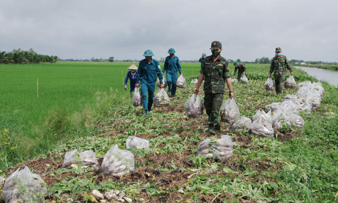 Bên cạnh đó, Bộ CHQS thành phố còn tặng thêm 4,2 tấn gạo, 4 tấn rau củ quả và 4000 trứng gia cầm cho người dân và một số nhu yếu phẩm khác. Càng đặc biệt hơn khi số nông sản này được Bộ CHQS thành phố mua lại từ những bà con nông dân gặp khó trong quá trình tiêu thụ khi giãn cách xã hội. Những phần quà này đã tiếp sức cho bà con vượt qua khó khăn trong mùa dịch bệnh, đồng thời thắt chặt thêm tình đoàn kết quân dân tại địa phương.