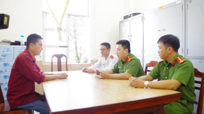 Ông Vũ tại cơ quan Công an và nhận tống đạt quyết định xử phạt hành chính.
