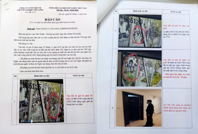 Báo cáo ghi nhận sự việc của an ninh tòa nhà.