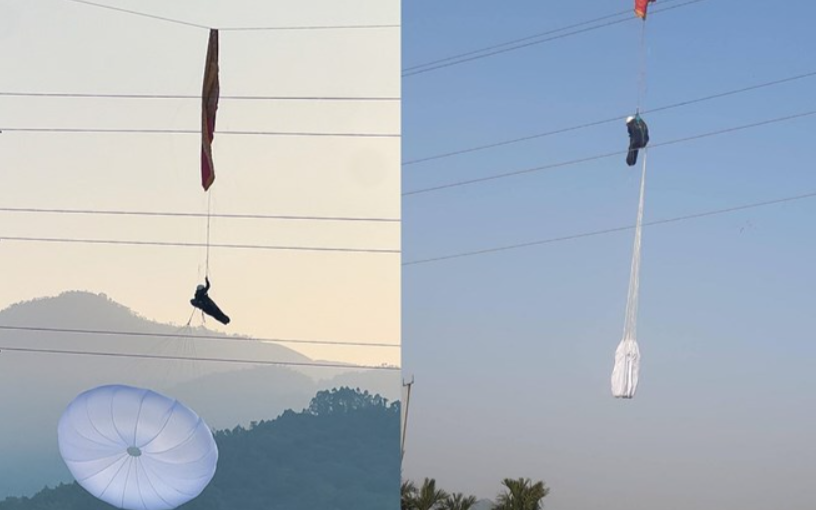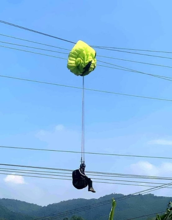 Trước đó ngày 20/10, một người đàn ông nhảy dù tại xã Quang Tiến, TP.Hòa Bình, khi chuẩn bị tiếp đất cũng bị mắc vào đường dây điện 35kV khiến cả người treo lơ lửng.