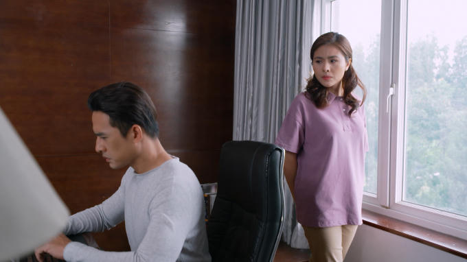 Vân Trang và Lương Thế Thành trong một cảnh quay.