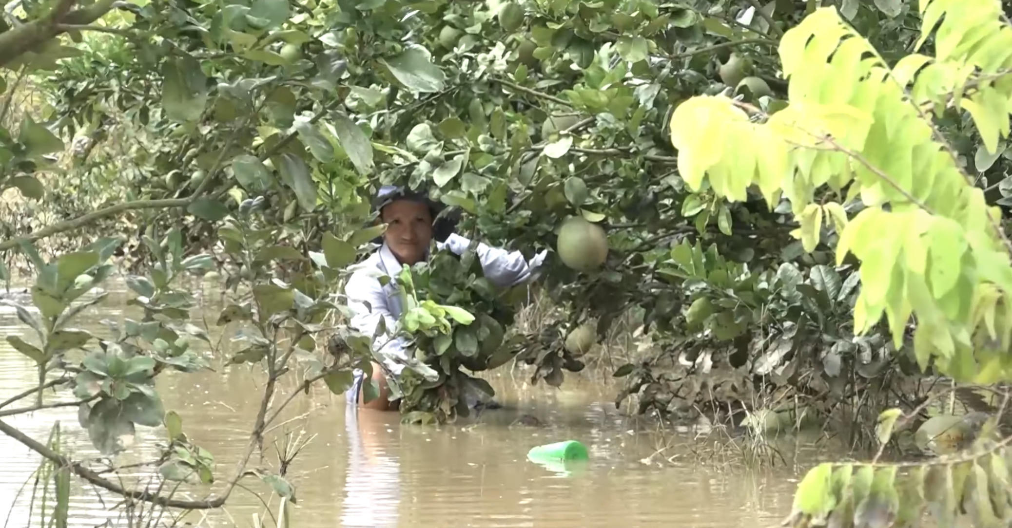 Lũ ngập tại vườn bưởi ở xã Nam Cát Tiên( H.Tân Phú)