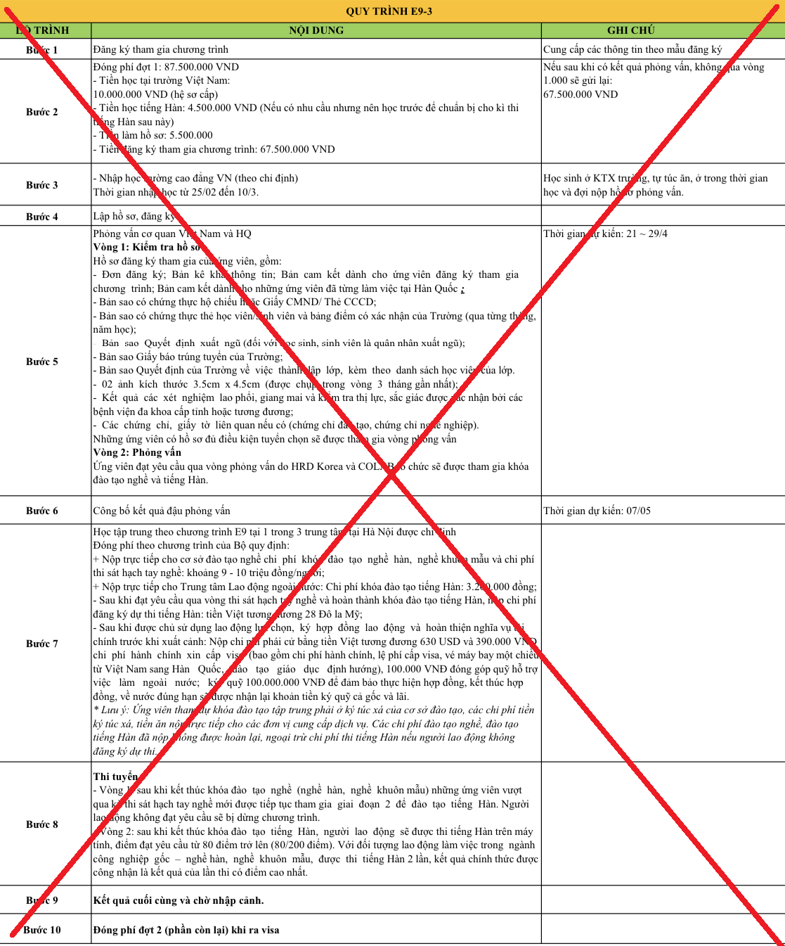 | Thông tin lừa đảo người lao động đi làm việc tại Hàn Quốc. (Ảnh: colab.gov.vn) |