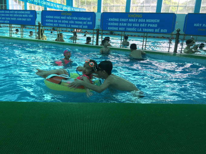 Dịp nghỉ hè, các bậc cha mẹ thường đưa con em mình tới các bể bơi để tập luyện, vui chơi.