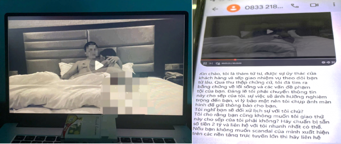 “Xin chào, tôi là thám tử tư, được sự ủy thác của khách hàng và sếp giao nhiệm vụ theo dõi bạn từ lâu. Qua thu thập chứng cứ, tôi đã tìm ra bằng chứng về lối sống và các vấn đề phạm tội của bạn. Đáng lẽ tôi phải chuyển thông tin này cho sếp của tôi, sự việc sẽ ảnh hưởng nghiêm trọng đến bạn, vì lý do bảo mật nên tôi chụp ảnh màn hình để gửi thông báo cho bạn. Tôi nghĩ bạn sẽ đối xử lịch sự với tôi chứ? Tôi cho rằng bạn cũng không muốn tôi giao thứ này cho sếp của tôi phải không? Hãy chuẩn bị sẵn số tiền 2 tỷ và liên hệ với tôi nhanh nhất có thể. Nếu bạn không muốn Scandal của mình xuất hiện trên nền tảng trực tuyến thì hãy liên hệ”. kèm theo nội dung tin nhắn là hình ảnh chụp màn hình giống với hình ảnh trong một đoạn video nhạy cảm để đe dọa.