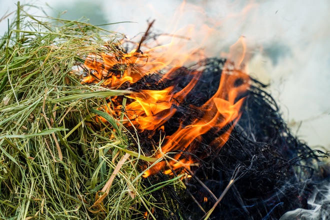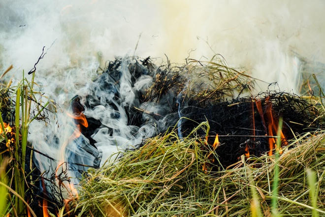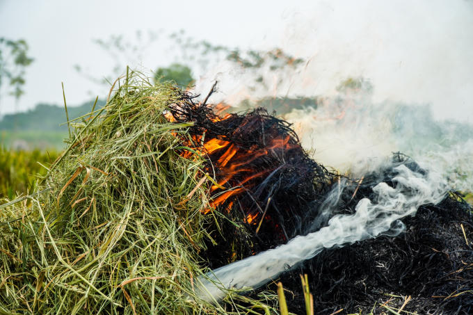 Rơm rạ càng tươi khi cháy sản sinh ra càng nhiều khói bụi hơn.