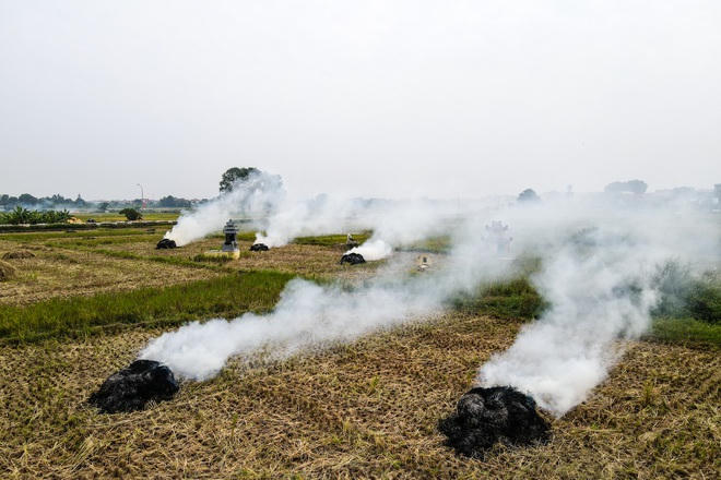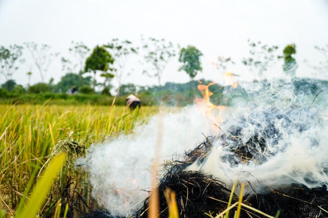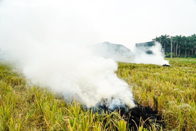 Tình trạng ô nhiễm còn nặng hơn khi bà con nông dân các huyện ngoại thành như Quốc Oai, Thạch Thất… đồng loạt đốt rơm rạ để chuẩn bị cho vụ lúa mới.