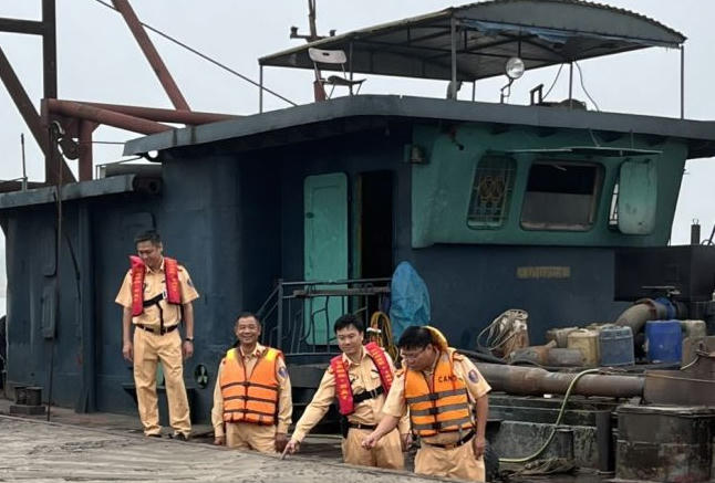 Lực lượng Cảnh sát đường thủy thuộc Thủy đoàn 1, Cục CSGT vừa phát hiện, bắt giữ tàu vận tải khai thác cát trái phép trên sông Hồng.
