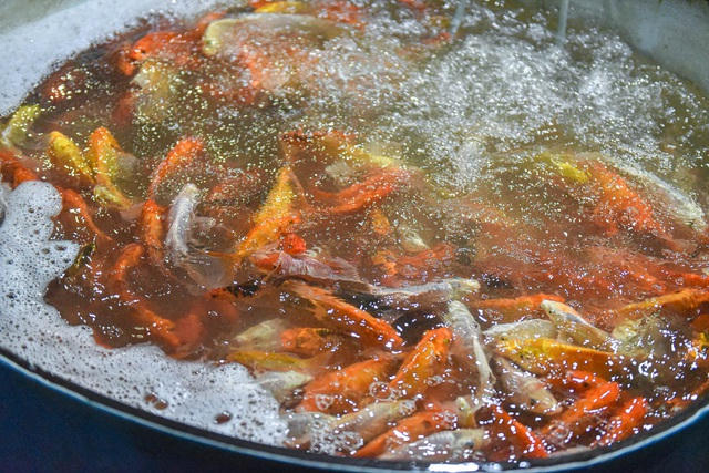 Cá loại vừa và nhỏ thường được các tiểu thương ưu tiên chọn mua vì dễ bán hơn. So với cá chép vàng thì cá chép đỏ được nhiều người lựa chọn hơn bởi cá khỏe và có màu sắc tươi tắn.