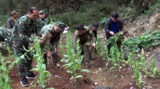 Cao Bằng: Phá nhổ hàng trăm cây thuốc phiện chuẩn bị ra hoa, kết trái