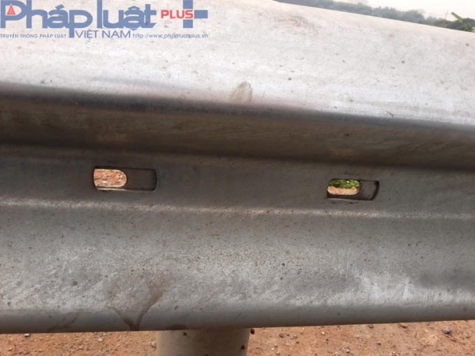 Đặc biệt, có những khu vực, đoạn hộ lan nối với thân trụ cắm xuống đường có 6 lỗ để gắn đinh ốc thì có đến 4 lỗ không còn ốc, chỉ trơ trọi lại một đinh ốc được bắt gắn vào hộ lan và thân trụ cắm xuống nền đường cao tốc.
