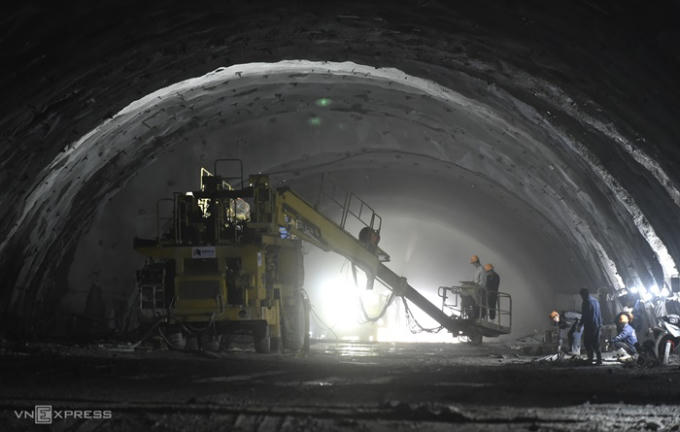 Trên công trường hầm Thung Thi, nhà thầu đang huy động phương tiện, nhân lực gia cố phần vỏ hầm trước khi hạ cốt nền theo đúng thiết kế.