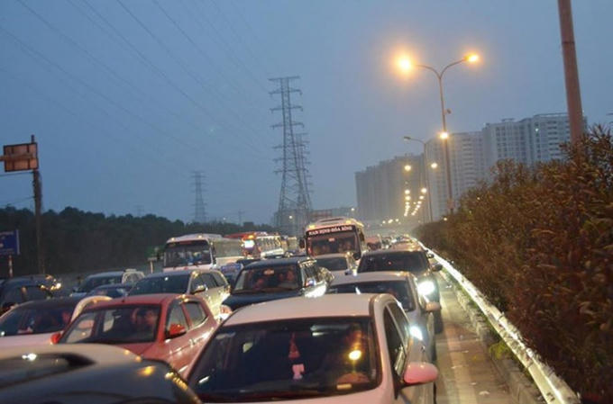 Từ chiều tối hôm qua, 8/2, lượng phương tiện dồn về cao tốc Pháp Vân- Cầu Giẽ quá lớn, gây ùn tắc kéo dài chưa từng có dù mới là chiều mùng 4 Tết Nguyên đán.