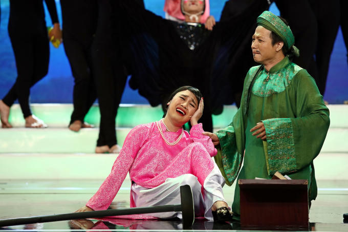Ở phần tiểu phẩm, Huỳnh Tiến Khoa - Don Nguyễn làm mới lại vở cổ tích nổi tiếng “Ăn khế trả vàng”. Câu chuyện hài hước, nhẹ nhàng nhưng có nhiều tầng nội dung, thông điệp lớn lao, thâm thúy. Trong tiết mục, cặp đôi ngẫu hứng “hành hạ” nhau trên sân khấu, khiến khán giả được dịp cười sảng khoái.
