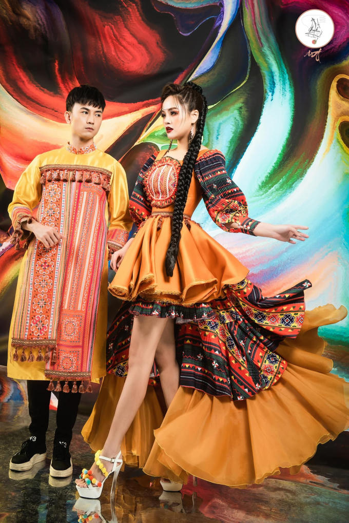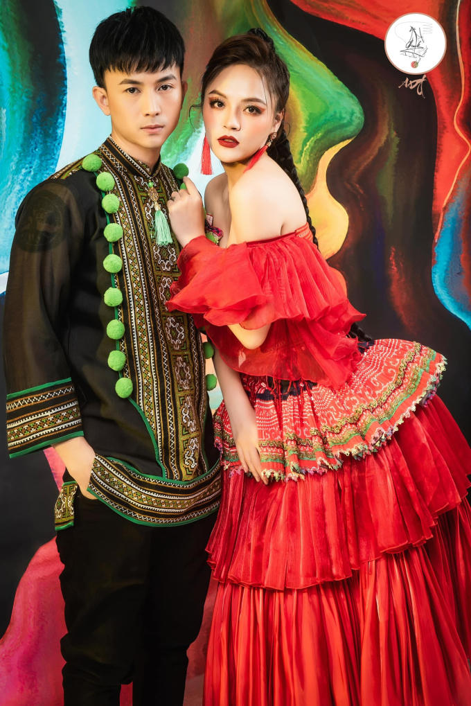 Khác với phong cách trẻ trung đượm buồn của những bộ ảnh trước đó, lần này cả hai phá cách với trang phục dân tộc cách điệu thời thượng, màu sắc rực rỡ.