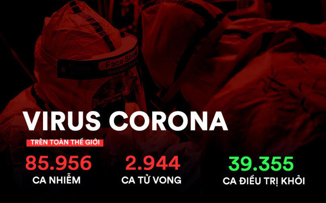 Đến nay, dịch Covid-19 đã xuất hiện tại 64 quốc gia, vùng lãnh thổ. Dịch đã khiến hơn 86.000 người nhiễm bệnh, gần 3.000 người tử vong trên toàn thế giới.