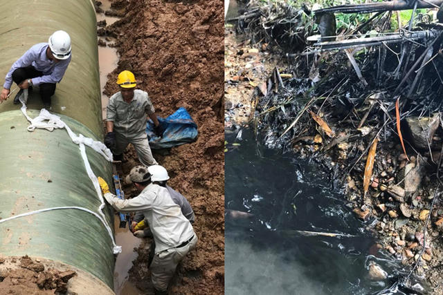 Trong khi đó, một số người dân tại xã Phú Minh, huyện Kỳ Sơn, tỉnh Hòa Bình cho biết từ 21h ngày 8.10 quanh khu vực suối đầu nguồn gần nhà máy nước sạch Sông Đà xuất hiện dầu nhớt đã qua sử dụng, có mùi khét rất khó chịu.