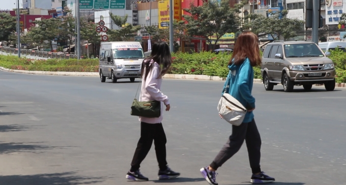 | Học sinh, sinh viên băng qua đường rất thản nhiên |