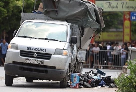 | Trước đó, khoảng 11h ngày 16/7, tài xế Lương lái xe ben loại 15 tấn mang biển số 88C-288.49 chở vật liệu xây dựng lưu thông trên đường DH05 hướng xã Cát Quế đi xã Minh Khai (huyện Hoài Đức). Khi xe ben vừa qua ngã 4 giao với đường Ba Chàng (xã Dương Liễu, huyện Hoài Đức) thì đâm vào thùng xe tải mang biển số 29C-597.75. Cú tông khiến xe tải văng vào xe máy do chị N.T.H (32 tuổi, trú huyện Hoài Đức) cầm lái chở theo 3 con nhỏ là các cháu N.T.K.O (13 tuổi), N.T.T.M (11 tuổi) và N.T.S (9 tuổi). Vụ tai nạn khiến 4 mẹ con chị H. tử vong tại chỗ. |