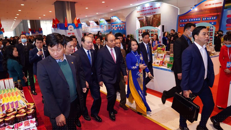 Thủ tướng tham quan Triển lãm thành tựu phát triển kinh tế tập thể, hợp tác xã.