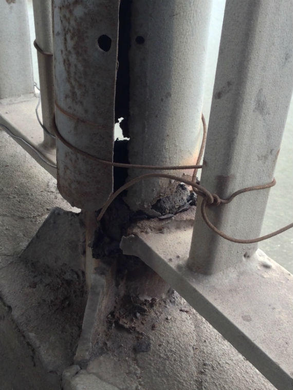 Cụ thể, mặt cầu nhiều chỗ bị lõm, tạo thành rãnh, có chỗ phải lót gạch phía công ty đã khắc phục hiện tượng này. Phần chân cột điện bị ăn mòn, lan can cầu bị rách mối hàn, công ty đã lên kế hoạch để khắc phục hiện tượng này trong tuần tới.
