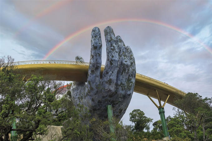 Báo CNN của Mỹ mô tả: “Cầu Vàng là một cây cầu nhỏ hẹp bao quanh sườn núi, được nâng đỡ trên đôi bàn tay cũ kỹ, rêu phong. Cây cầu được thiết kế như đôi bàn tay Phật nâng dải vàng. Công trình mở lối đi trên mây, giữa lưng chừng núi cho du khách, trở thành điểm đến rất thu hút khách du lịch trong thời gian qua”.