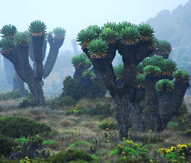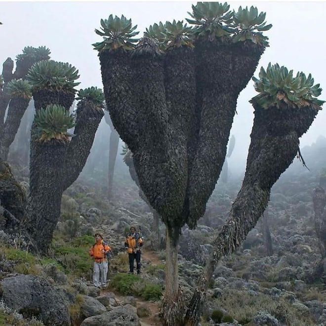 Trên ngọn núi lửa không hoạt động Kilimanjaro ở Tanzania có nhiều loài cây "độc nhất vô nhị" với hình dáng vô cùng kỳ quái.