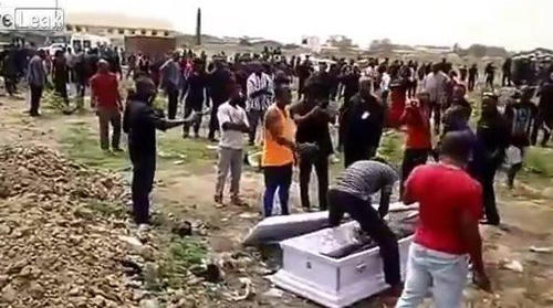 Trong đoạn clip, người ta có thể thấy hình ảnh thân nhân của người chết đang sợ hãi khi những người đàn ông lôi xác chết được tẩm liệm ra khỏi quan tài trong một đám tang tại Ghana và bỏ đi cùng với xác chết.